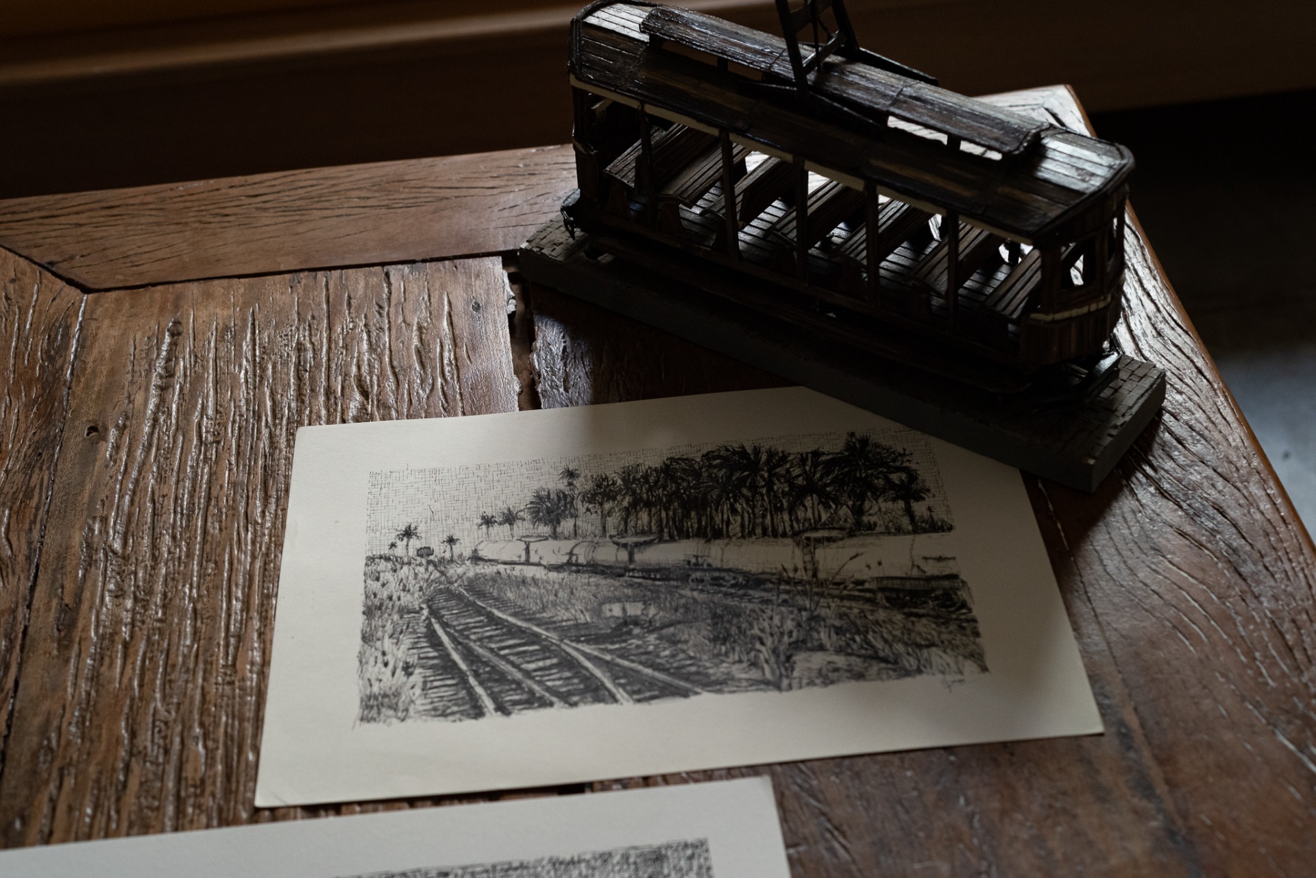 Paisagens urbanas e campestres, cenas ferroviárias e fluviais ganham vida nos traços de Diego. Com técnicas mistas, o artista reinterpreta ruínas e arquitetura vernacular brasileira, através de esculturas e murais botânicos únicos.